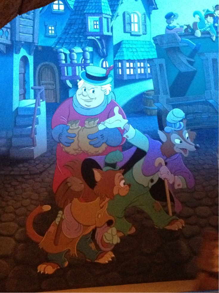 アトラクション「ピノキオの冒険旅行」の乗り場の壁の絵でおなじみですね。